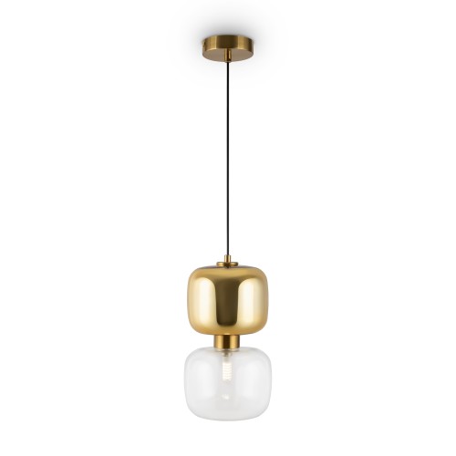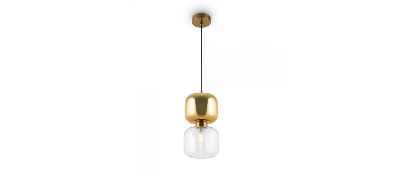 Металлическая арматура в двух оттенках: латунь, хром. Стеклянный плафон оригинальной формы. Верхняя часть плафона гальванизирована в тон арматуре, нижняя – прозрачная. Источник света – лампа G9...