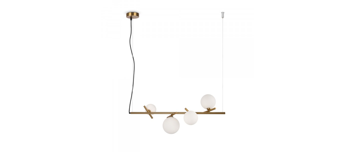 Материал арматуры — рифленый металл, цвет — латунь. Плафоны-сферы из белого матового стекла для мягкого заливающего света. Воздушный образ плафонов, строгие тонкие линии арматуры придадут интерьеру изящество и легкость. Высота подвесов регулируется. Источник света — лампы с цоколем G9...
