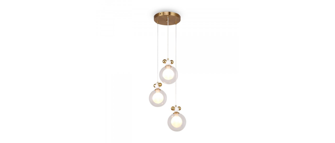 Металлическая арматура, два цвета — латунь и хром. Разные по форме плафоны — цилиндрические или овальные, украшены металлическими шариками. Стекло двойное, прозрачное или с легким матовым напылением. Конструкцию можно регулировать по высоте. Источником света служит лампа с цоколем G9 или Е14...