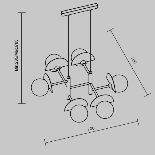 Арматура — металл, цвет — латунь. Плафоны из прозрачного стекла с дымчатым оттенком в форме овала, круга или конуса. Универсальный минималистичный дизайн позволяет составлять комбинации из нескольких подвесов. Регулируемая высота. Тренд «invisible light» - LED-источник света утоплен в основание плаф..