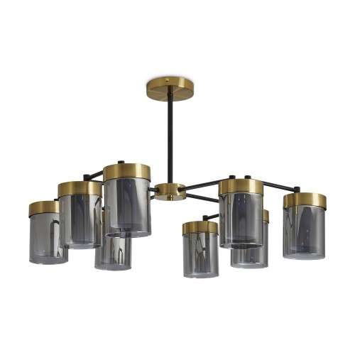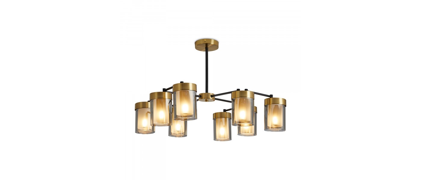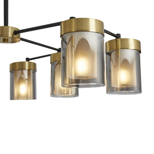 Арматура - металл в двух востребованных оттенках латунь и черный. Плафоны из двойного стекла дымчатого оттенка, внутри белый матовый. Трендовая форма плафонов в виде цилиндра. Потолочные светильники подойдут для помещений с низкими потолками. Источник света лампа. Цоколь E14..