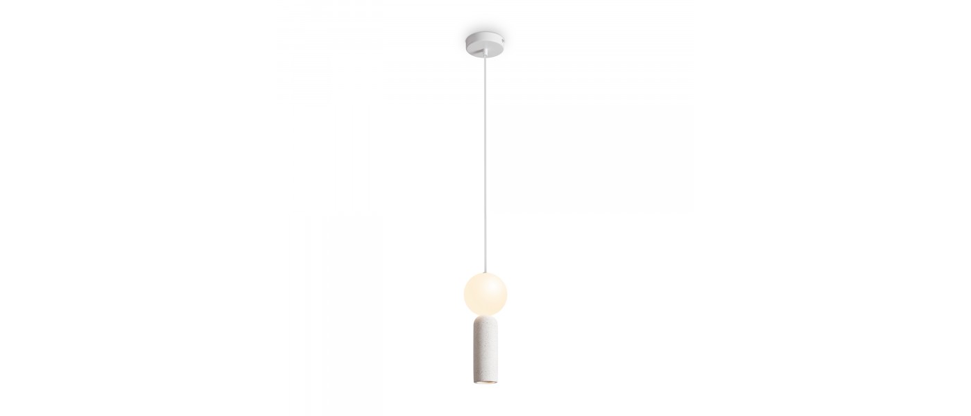 Материал арматуры — металл белого цвета, плафоны выполнены из светлого микроцемента. Светильники представлены в двух версиях: со встроенным LED-источником освещения с цветовой температурой 2700К, а также с цоколем E27. Минималистичный дизайн в белом цвете идеально подходит для современных интерьеров..
