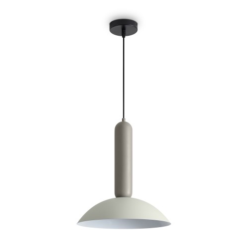 Материал арматуры — металл, цвет — черный. Каждый подвеской светильник окрашен в 2 цвета: серо-бежевый (RAL 1019 ) и жемчужно-белый (RAL 1013), Каменно-серый (7030) и Белый (9010), Белый (9010) и Каменно-серый (7030). Необычный плафон-купол небольшой высоты дополнен подвесом цилиндрической формы. По..