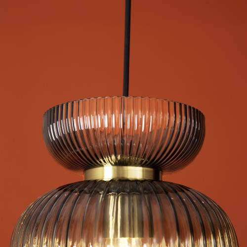 Материал арматуры — металл, цвет — черный. Подвесной светильникс цоколем E27. Рельефный стеклянный плафон восточной формы, с рельефным стеклом в двух цветах:коричневый и дымчатый. Подходит для интерьеров в неоклассическом стиле и пространств в стиле лофт...