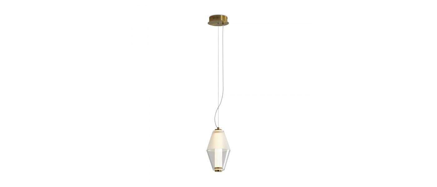 Арматура из металла. Цвет латунь. Плафон из матового, кристально прозрачного и дымчатого стекла. Горизонтальные и вертикальные подвесы. LED источник света. Цветовая температура 3000К...