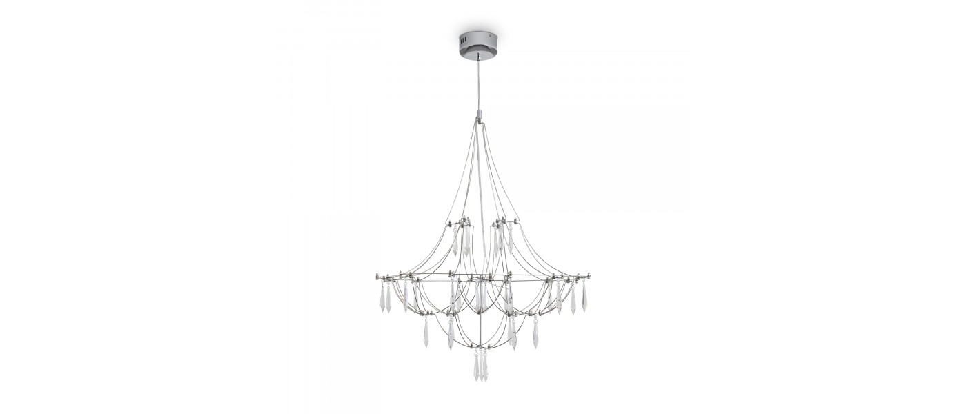 Арматура - хромированная нержавеющая сталь. В соединениях арматуры Led источник света и декоративные элементы из хрусталя в виде капелек. Цветовая температура 3000К...