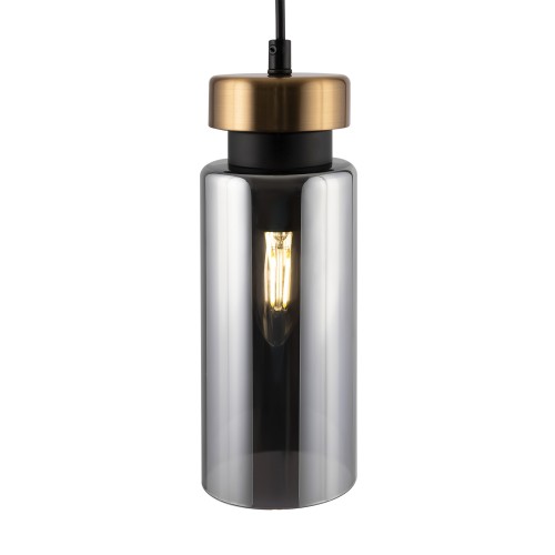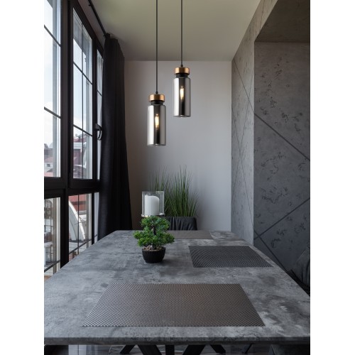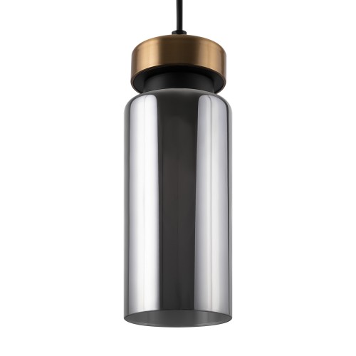 Металлическая арматура в двух оттенках: никель и черный с золотом. Плафон – глянцевое стекло. Цвет – серый. Оригинальная вытянутая цилиндрическая форма для акцентной подсветки. Источник света – лампа с цоколем E14...