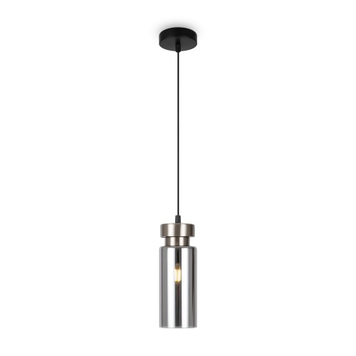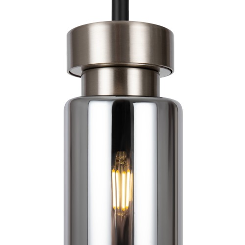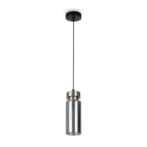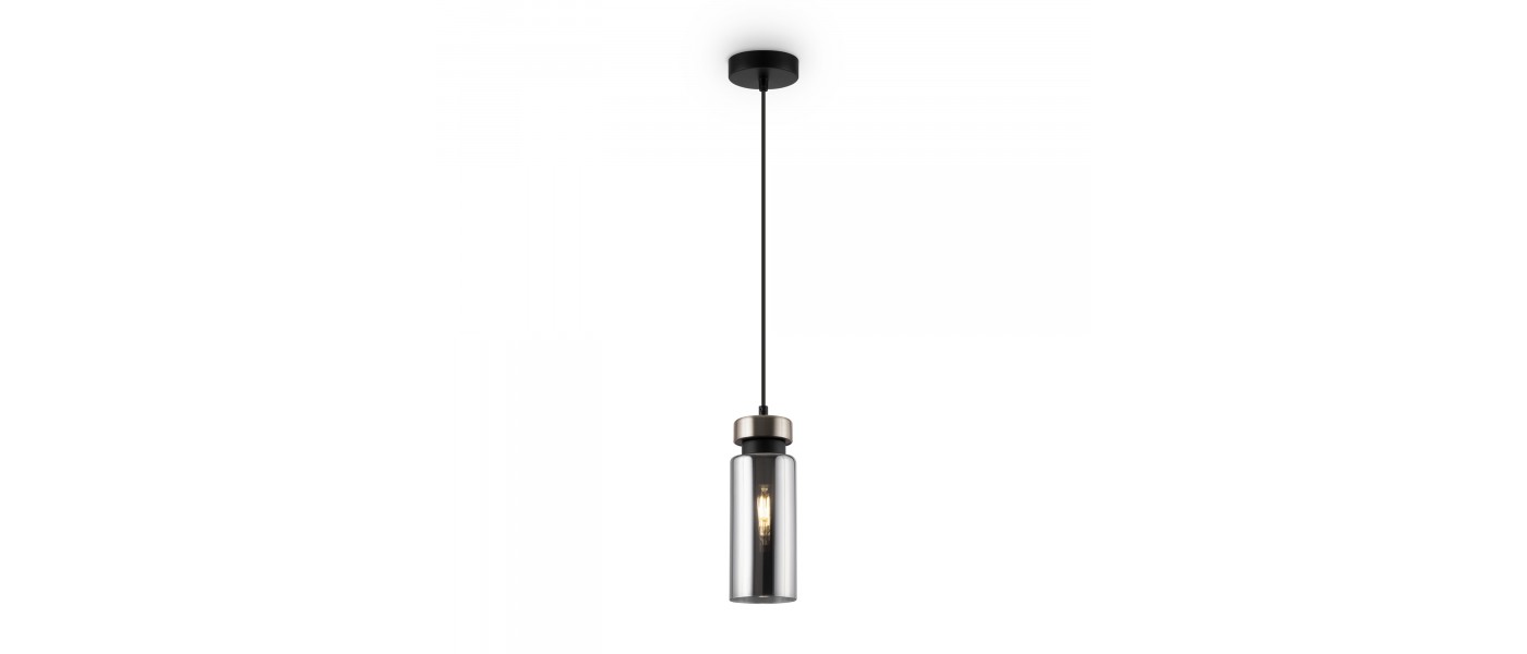 Металлическая арматура в двух оттенках: никель и черный с золотом. Плафон – глянцевое стекло. Цвет – серый. Оригинальная вытянутая цилиндрическая форма для акцентной подсветки. Источник света – лампа с цоколем E14...