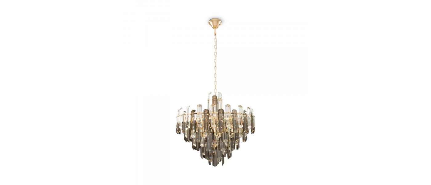 Металлическая арматура в золотом цвете. Декоративные подвески различной формы и огранки. Оригинальные волнообразные очертания светильника. Трендовый эффект парения. Ассортимент для общей и зональной подсветки...