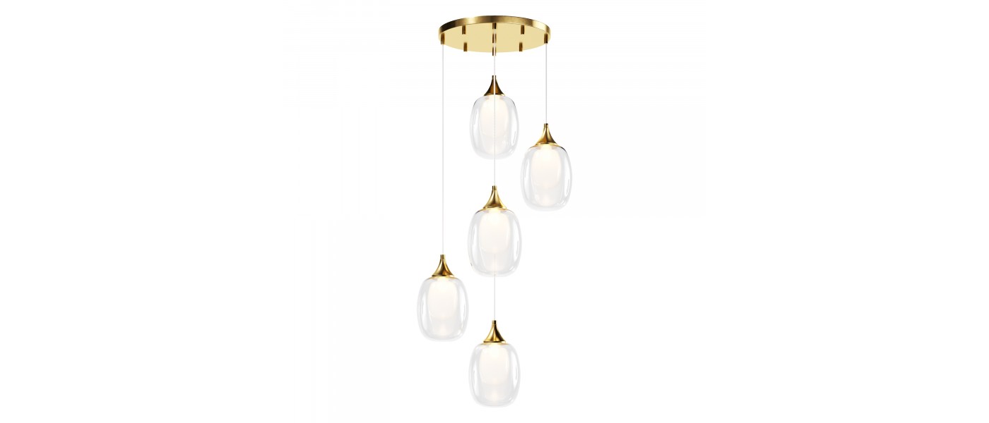 Металлическая арматура, цвет — латунь. Плафоны — двойное выдувное стекло. Внутренняя часть – матовая, внешняя – прозрачная. Элегантная неоклассика, трендовые округлые формы. Прозрачный провод длиной 3 метра подходит для помещений с высокими потолками. Регулируемая высота светильника для удобного раз..