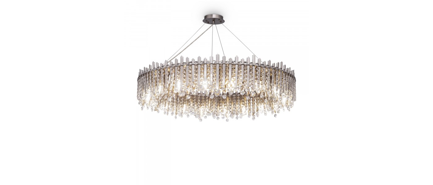 Металлическая арматура, цвет – никель. Декоративные никелированные эле менты по периметру плафона дополнены хрустальными подвесками. Оригиналь ная волнообразная форма. - -..