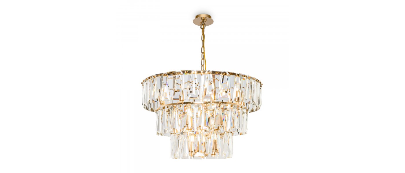 Материал арматуры – металл, оттенки – хром и золото. Декор – массивные крис таллы сложной огранки. Высота подвесных моделей регулируется длиной цепи. Источник света - лампа с цоколем Е14...