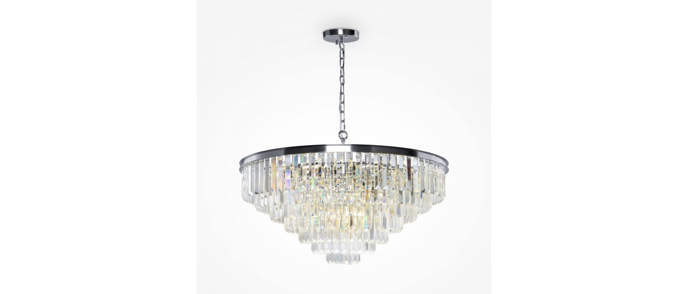 Арматура из металла в трех оттенках: латунь, хром, золото. Многоярусный декор. Подвески: прозрачное (арматура – хром, латунь) и янтарное (арматура – золото) стекло. Высота подвесных моделей регулируется...