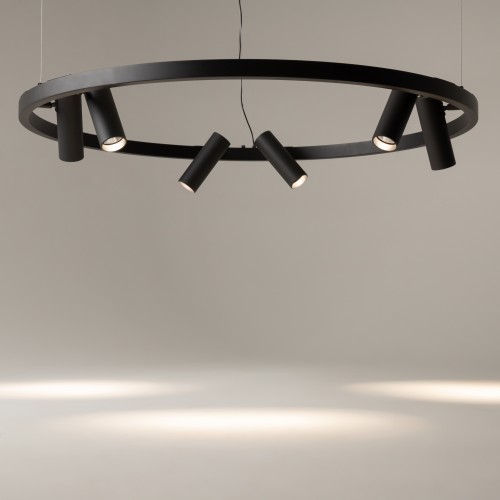 Металлическая арматура, оттенки – черный, белый. Плафоны-споты перемеща ются по кольцу, вращаются на 340° по горизонтали и 90° по вертикали. LED- модуль, акриловый рассеиватель...