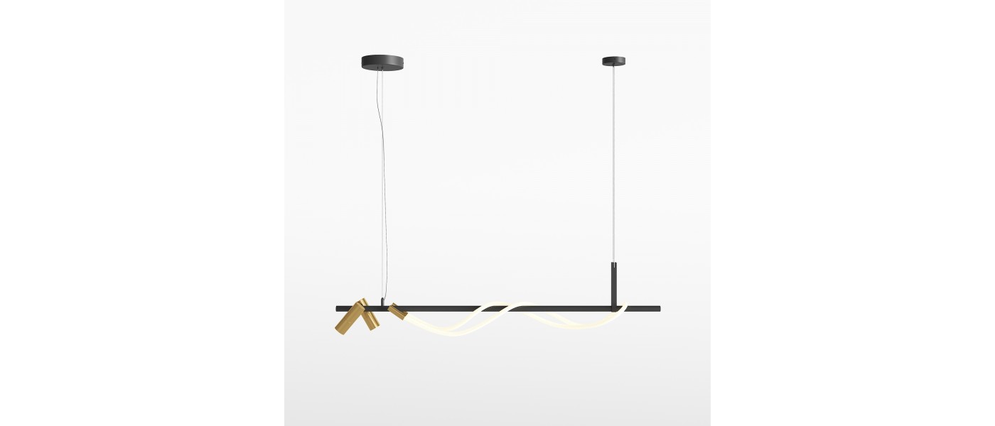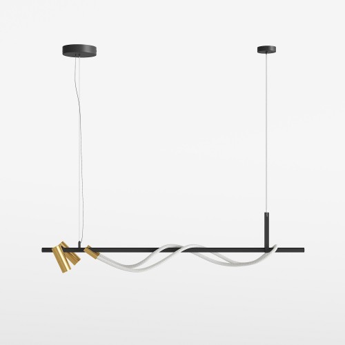 Алюминиевый корпус. Оттенки – золотой, матовый черный. Рассеиватель двух видов – силиконовая трубка и сверхкрепкий жгут (не желтеет со временем, обладает высокой прочностью). Мягкое равномерное свечение благодаря высокой плотности светодиодов. Цветовая температура 3000К. LED-источник света.