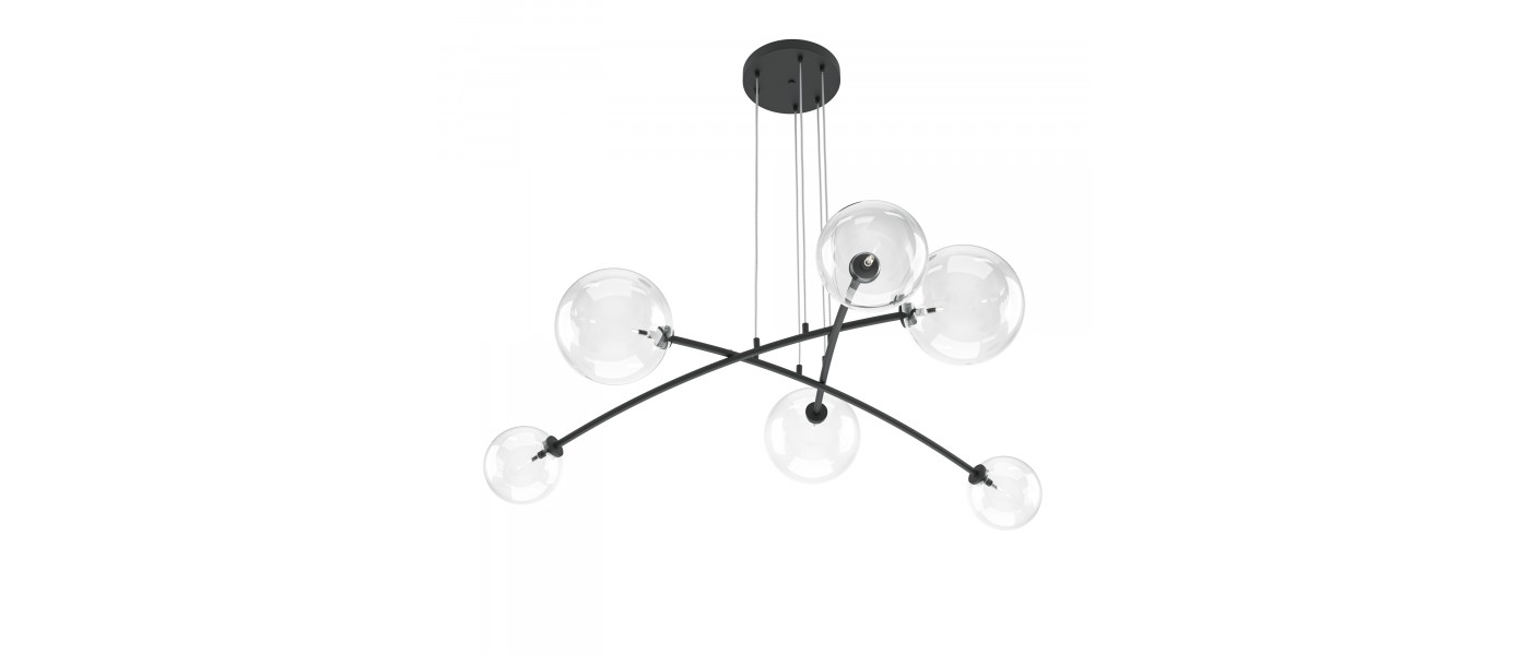 Материал арматуры - металл. Цвет - латунь, черный. Изящные линии арматуры, прозрачные плафоны из стекла в виде шара с миниатюрными лампами создают эффект воздушности светильников. Регулируемая высота подвесных светильников. Цоколь G4...