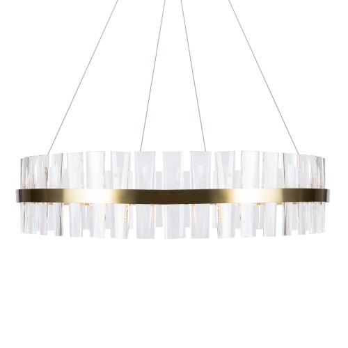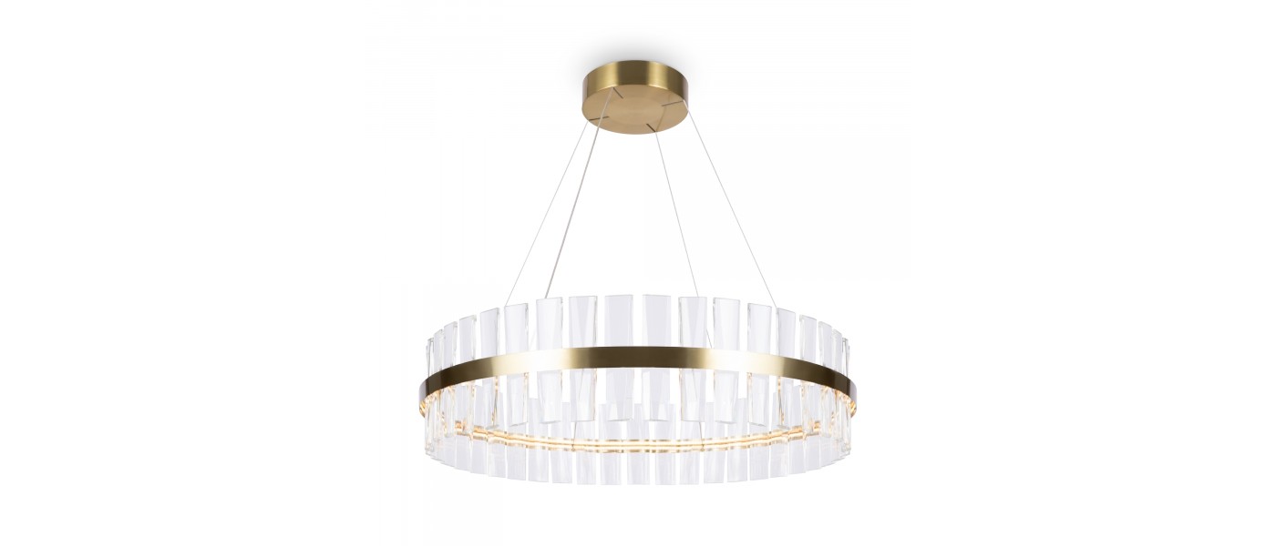 МатМатериал арматуры - металл, цвет - латунь. Декор - объемные прозрачные хрустальные элементы с чередующимся рисунком. LED источник света, цветовая температура - 3000К. Регулируемая длина тросов...