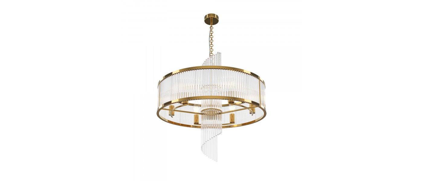 Материал арматуры - металл, цвет - золото. Декоративный элемент из прозрачного стекла в форме рельефных трубок. Цоколь Е14. Лампы в комплект не входят...