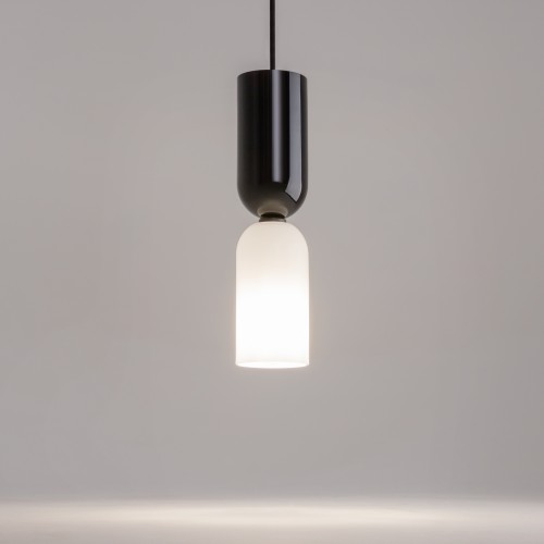 Металлическая арматура, цвет - черный. Светильники стилизованы под форму песочных часов с обтекаемой формой. Керамические элементы с глянцеовй глазурью. Подвесные светильники с плафонами из белой керамики с прозрачным, черно-белым, золото-белым и белым стеклом. Регулируемая высота подвесных светильн..