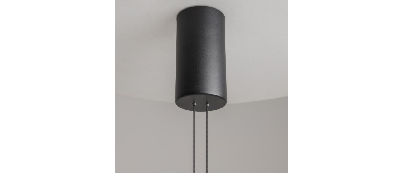 Арматура из алюминия черного цвета, контрастирует белой пластиной диаметром 420мм или 600мм. Силиконовый рассеиватель скрывает LED-источник света с температурой 3000К. В серии представлены светильники двух поколений: в первом источник светит только вверх; во втором источник светит вверх и вниз, что ..