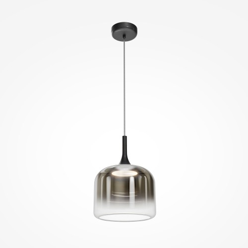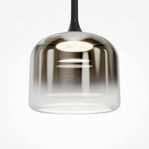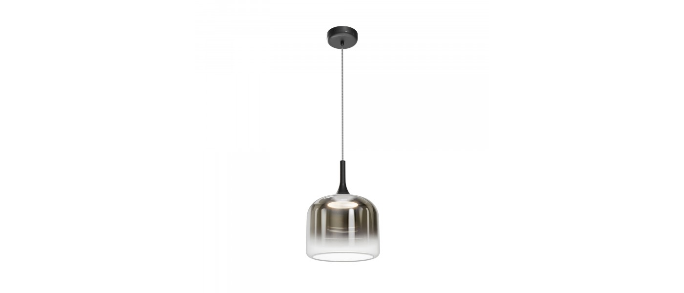 Материал арматуры и плафонов — литое стекло, цвет — градиентный черный, золотой и белый. Фактура поверхностей гладкая. Источник света: LED. Цветовая температура светильника 3000К, угол рассеивания света 120°. На проводе расположен тач-сенсор, при длительном нажатии световой поток меняет свою мощность (диммируется). Отражаясь от стекла, свет стремится вниз, создавая визуальный эффект парения плафона в воздухе.