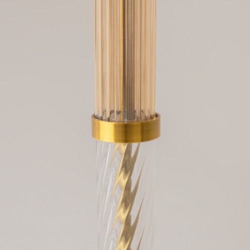 Серия в тренде massive light - массивная, но при этом изящная арматура. Металлическая арматура в цвете латуни дополняется стеклянными рельефными элементами. Три цвета стекла: прозрачный, янтарный и дымчатый с зеркальным эффектом. Плафоны из стекла белого цвета. Цоколь G9. Серию составляют универсаль..