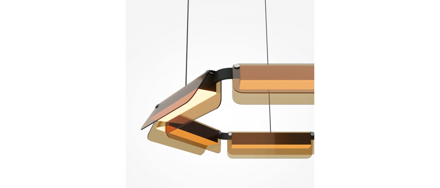 Светильники с двумя сочетаниями: арматура из металла в цвете сатинированной латуни в комбинации с тонированными светло-серыми плафонами из стекла и арматура в трендовом цвете черный хром с плафонами янтарного цвета. Источник света: LED. Цветовая температура — 3000К, угол рассеивания — 120 градусов...