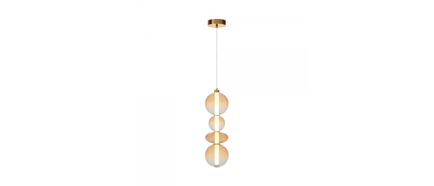 Светильники с тонированными выдувными стеклянными плафонами (дымчатыми или янтарными) и металлической арматурой (черной или цвета латуни). Окрашивание плафонов градиентное. Источник света: LED. Световой элемент установлен внутри акрилового рассеивателя. Цветовая температура источника света – 3000К, ..