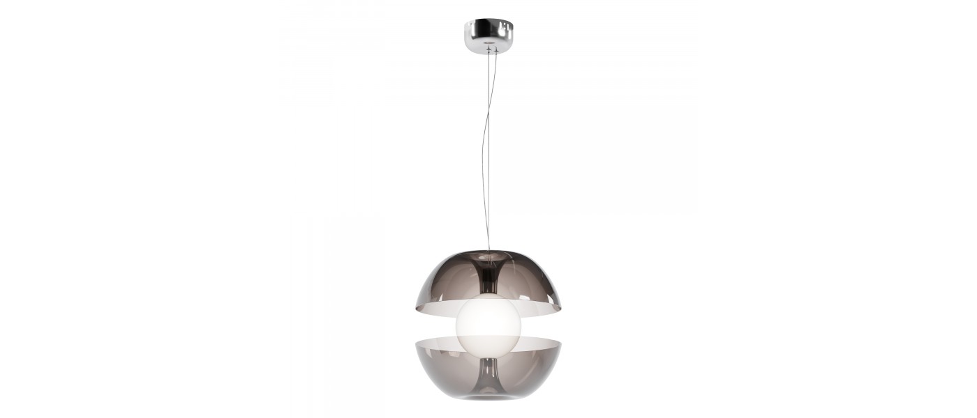 Металлическая арматура в двух оттенках: хром и золото. Плафон из матового стекла. Внешний стеклянный декор в дымчатом и янтарном цвете. Тренд — оптическая иллюзия, эффект парения светового элемента. LED-источник света. Цветовая температура 3000К...