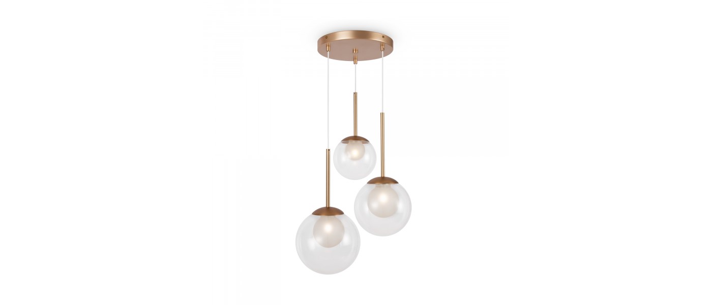 Материал арматуры – металл, цвет - золото, белый, черный. Округлые плафоны из матового белого стекла. Универсальные формы, минималистичный дизайн. Цоколь - E14. Лампы не входят в комплект. Регулируемая высота подвесных светильников...