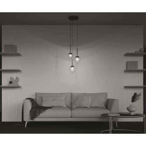 Арматура из металла, цвет – хром. Акцентный декор в виде рельефных сфер из литого стекла. Источник света – светодиодная лента – скрыта под акриловым рассеивателем. Регулируемая высота подвесных светильников...