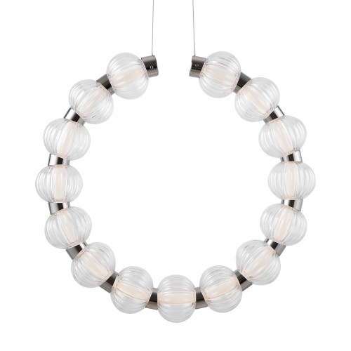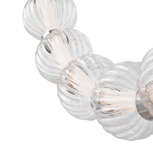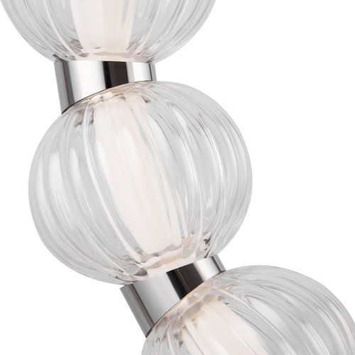 Арматура из металла, цвет – хром. Акцентный декор в виде рельефных сфер из литого стекла. Источник света – светодиодная лента – скрыта под акриловым рассеивателем. Регулируемая высота подвесных светильников...