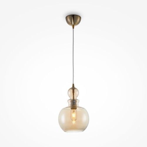 Арматура из металла, оттенок – бронза. Плафон из выдувного стекла в янтарном цвете. Витой провод в текстильной оплетке. Винтажная форма..