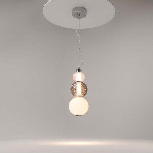 Серия Collar — выбор настоящих ценителей эксклюзивного дизайна. Подвесные светильники выполнены в виде нанизанных на трос элементов из выдувного стекла 3-х видов: прозрачное стекло с вертикальным рисунком, матовое и тонированное стекло с геометрическим рисунком. Высота светильников серии регулируетс..
