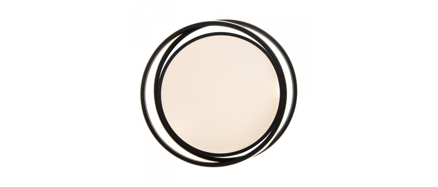 Арматура из металла и акрила. Цвет – черный. Трендовый элемент дизайна – кольца, расположенные под необычным углом. Энергоэффективный LED-источник дает яркую и комфортную для зрения подсветку...