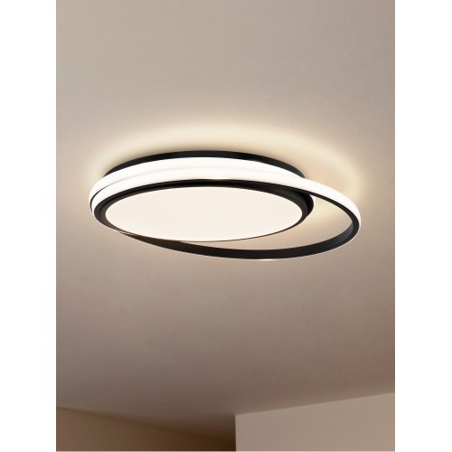 Арматура из металла и акрила. Цвет – черный. Трендовый элемент дизайна – кольца, расположенные под необычным углом. Энергоэффективный LED-источник дает яркую и комфортную для зрения подсветку...