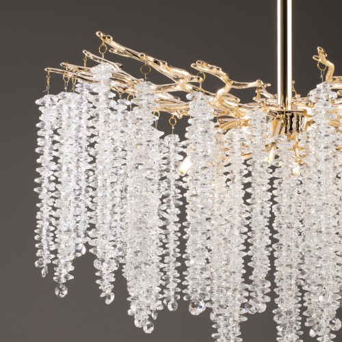 Материалы арматуры —металл, цвет — золото. Хрустальные декоративные элементы напоминают капельки - создают глубокие переливы света. Дизайн в трендовой растительной тематике. Источник света — лампа с цоколем G9 и с поворотной функцией...
