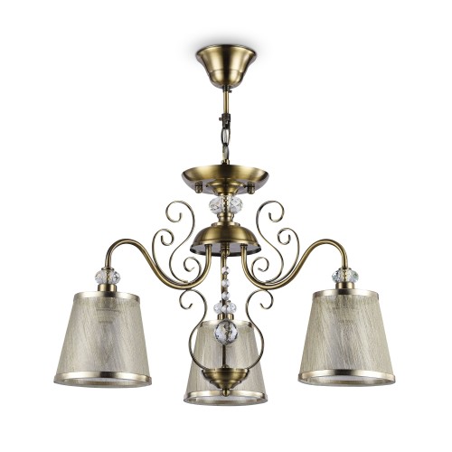 Серия из металла цвета античной бронзы. Арматура светильников Driana дополнены завитками на рожках и узогнутым декором в центральной части. Абажуры из полупрозрачной органзы выполнены в виде колокольчиков и обрамлены ободками из металла...