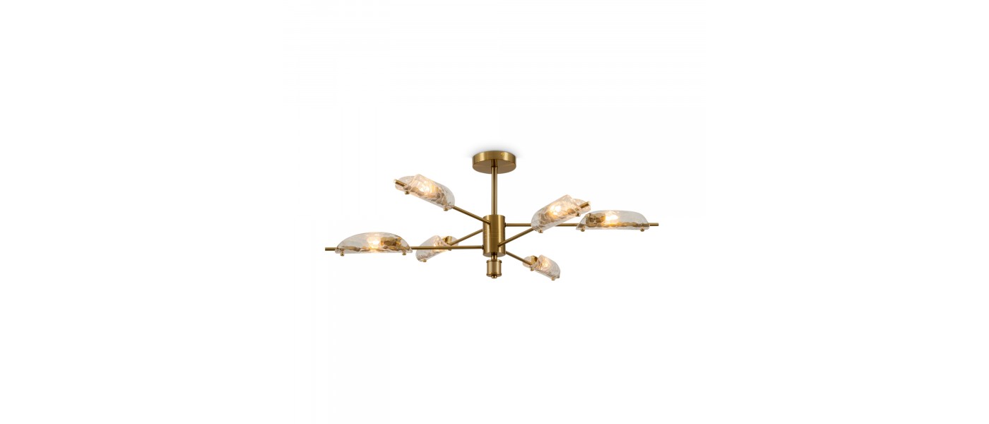 Металлический корпус, цвет— латунь. Плафон, моделированный под вытянутый лепесток с эффектом чеканки на стекле. Источник света — лампа с цоколем G9 и максимальной мощностью 30W дает яркое и равномерное освещение. Компактная высота – идеальное решение для низких потолков...