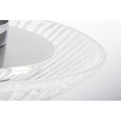 Материал арматуры – металл, оттенки – никель, золото. Плафон – прозрачное фактурное стекло. Традиционная форма античной чаши...