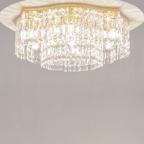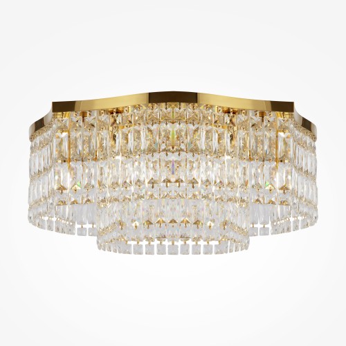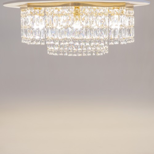 Металлическая арматура в двух оттенках: хром, золото. Декор – прозрачные кристаллы. Потолочные модели имеют два яруса подвесок. Высота подвесной люстры регулируется тросом...