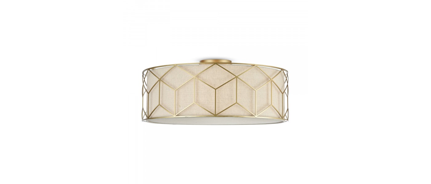 Арматура из металла золотого цвета. Абажур – натуральный лен на ПВХ. Металли ческий орнамент опоясывает абажур. Льняной рассеиватель...