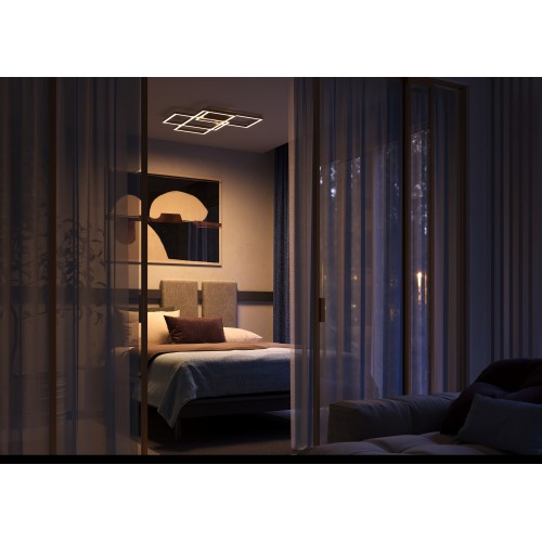 Металлическая арматура, оттенки — белый и черный. Матовый акрил скрывает интегрированные LED-источники. Геометричный дизайн: конструкция состоит из наложенных друг на друга прямоугольников...