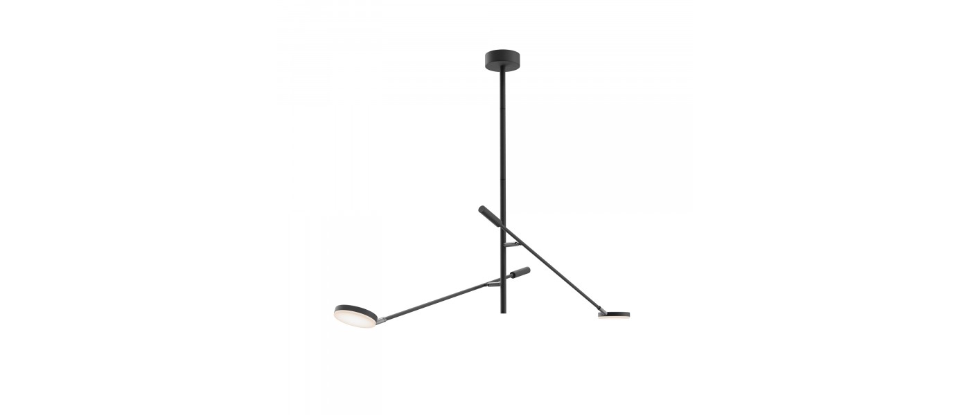 Плафоны и арматура из металла. Цвет рассеивателя — белый, арматура черная или белая. Конструкция предусматривает шарнирный механизм, позволяющий регулировать направление света и высоту светильников. Плафоны вращаются на 90 и 360° (в вертикальной и горизонтальной плоскостях). Угол рассеивания — 120 г..