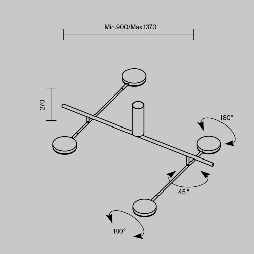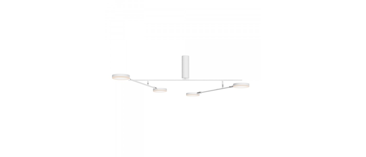 Плафоны и арматура из металла. Цвет рассеивателя — белый, арматура черная или белая. Конструкция предусматривает шарнирный механизм, позволяющий регулировать направление света и высоту светильников. Плафоны вращаются на 90 и 360° (в вертикальной и горизонтальной плоскостях). Угол рассеивания — 120 г..