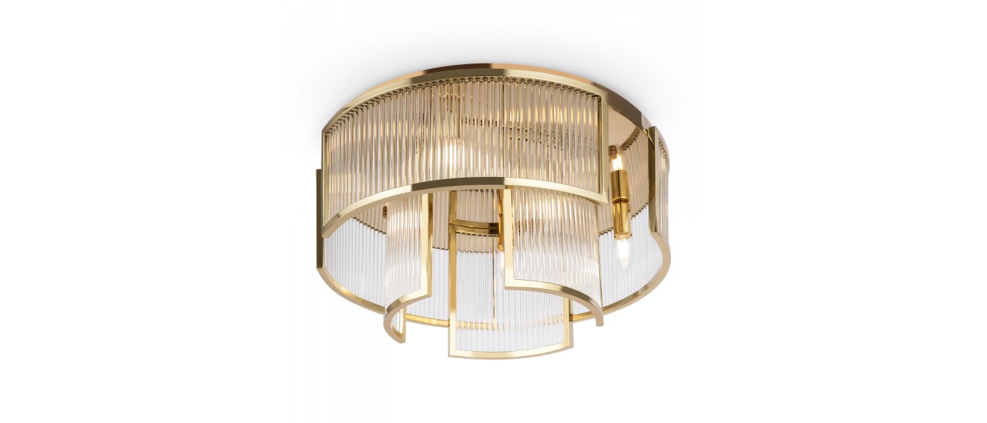 Материал арматуры - металл, цвет - золото. Декоративный элемент из прозрачного стекла в форме рельефных трубок. Цоколь Е14. Лампы в комплект не входят...