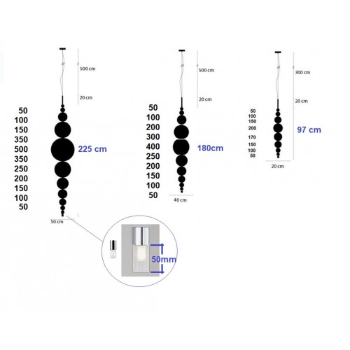 Светильник DZN-14036 ЧЕРНЫЙ ХРОМ ` D200/H1000+5000/1/G9/40W H1 XL TEARS FROM MOON H1170*D20