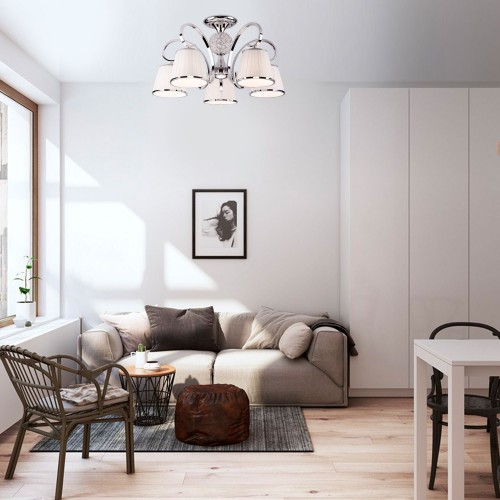 Светильник SFS 1208/5B CR ХРОМ D600/H540-770/5/E14/60W тканевый плафон