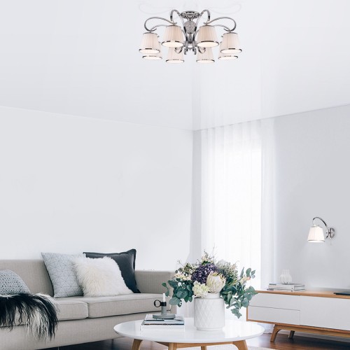 Светильник SFS 1208/5B CR ХРОМ D600/H540-770/5/E14/60W тканевый плафон