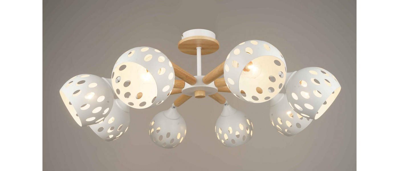 D600 X H400 8 Х Е27 Х 60W. Цвет основания: хром. Материал декора: тканевые плафоны, декоративные деревянные вставки цвета венгеАналог:GSMIN Loft Circle люстраПотолочный светильник "Волна" 1840/1 белыйBayerLux Светильник "Купол"Подвесной светильник Lightstar Agola 810020Светильник потолочный "Этнер"С..